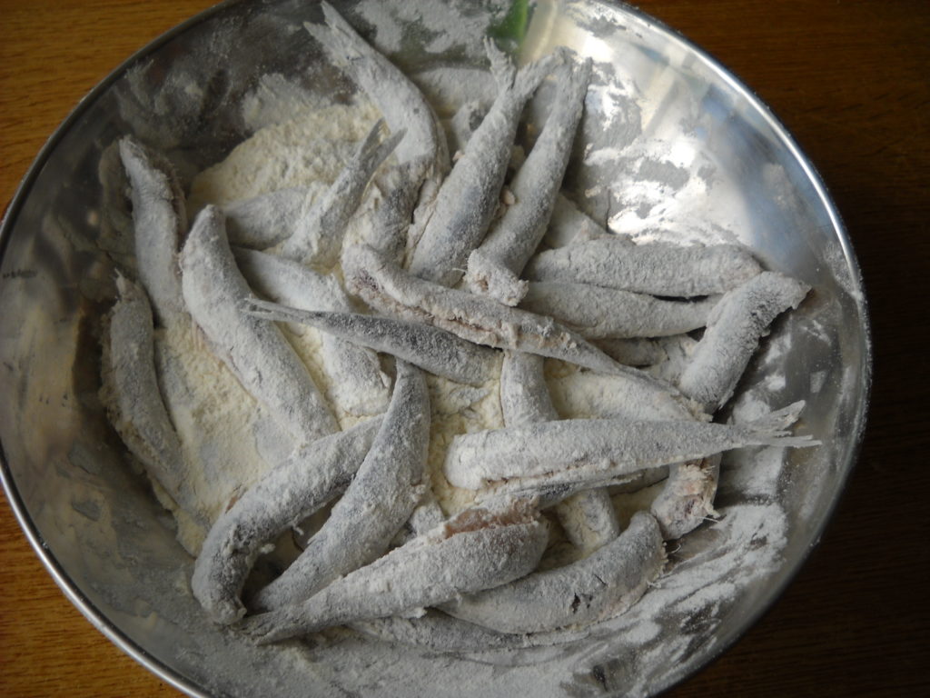 Per prima cosa infarinare le alici come vedete nella foto in basso!