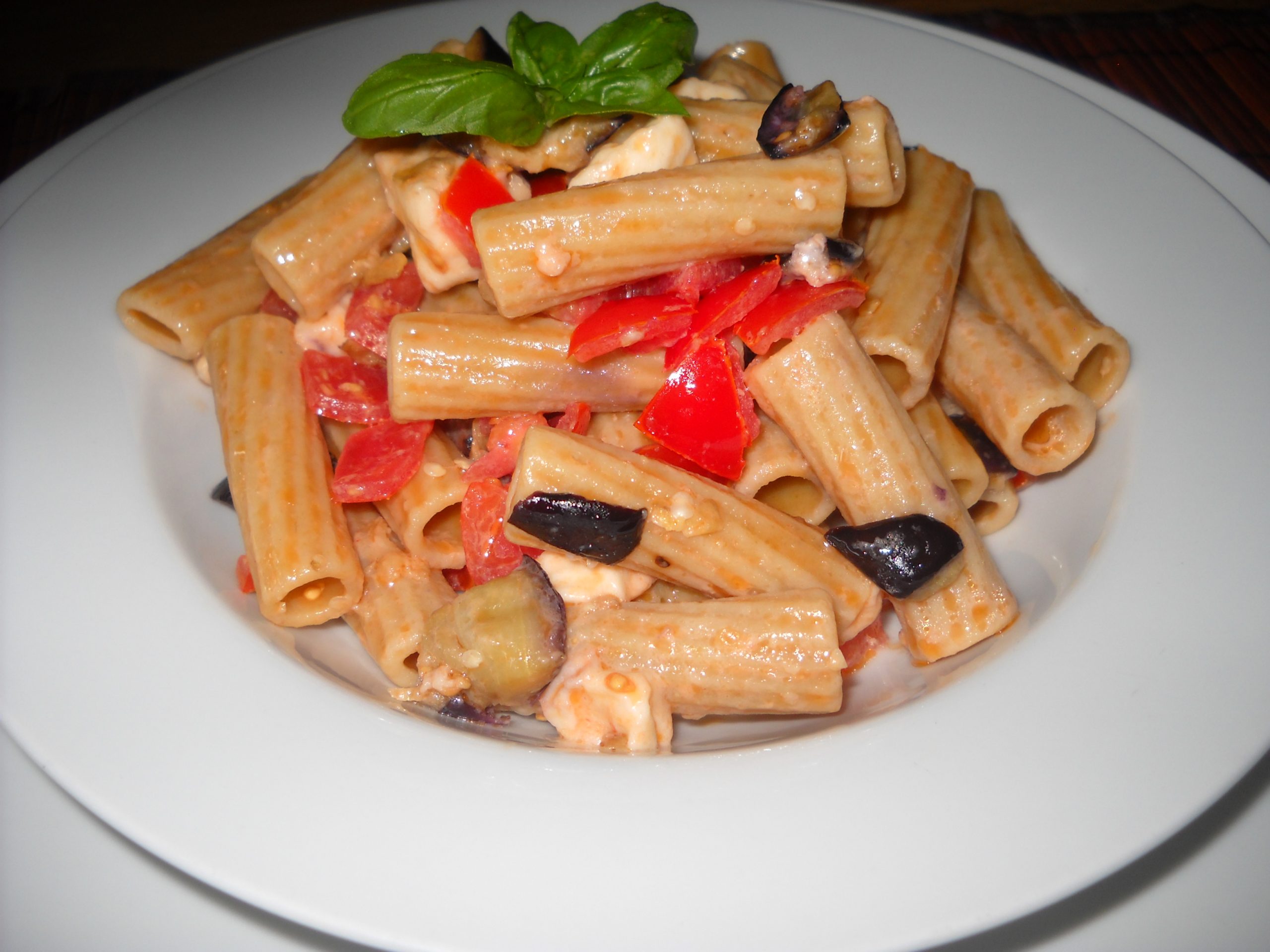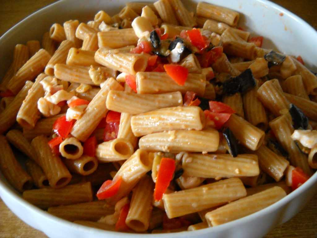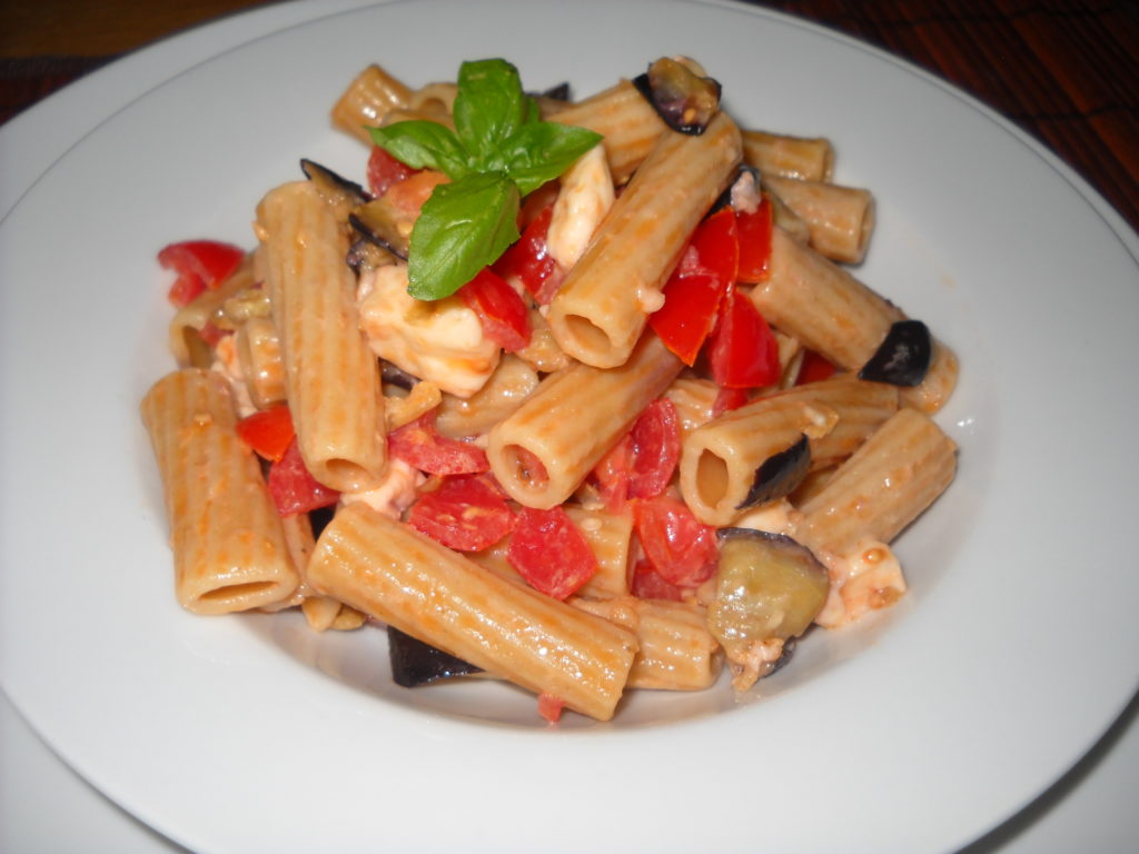 Ed ecco qua! Rigatoni integrali con mozzarella e melanzane è pronta e non resta che servire e gustare questo piatto di pasta fredda!