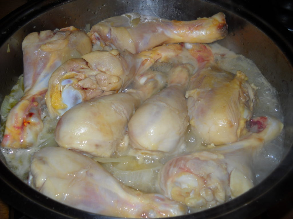 Di seguito inserire i fuselli di pollo, e far soffriggere anche questi per circa dieci o 15 minuti a fiamma bassa,